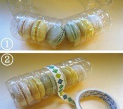Piece and capkeys have a characteristic to bleach, and it's hard to bring such beauty to the guests. It's okay! Do that. plastic bottles With your hands, sweet boxes. From the cardboard circle and the half of the bottles, there's a box for one cake, and two halfs of bottles can carry delicious macaroons!